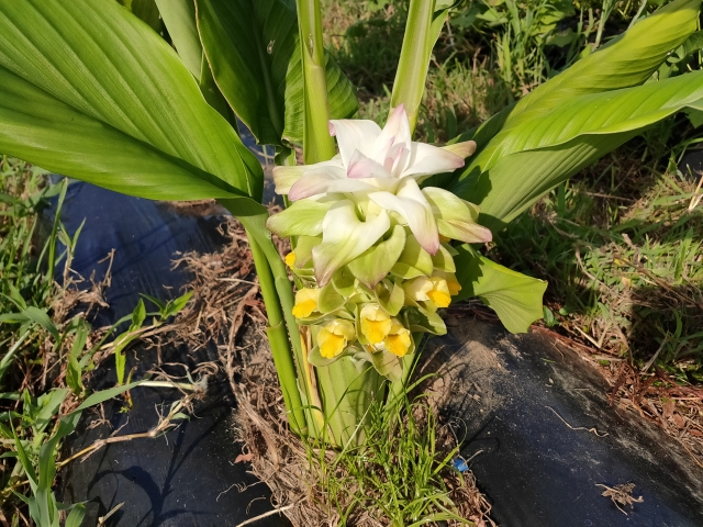 秋にかけ白色の花を咲かせるため、秋ウコンと呼ばれています。